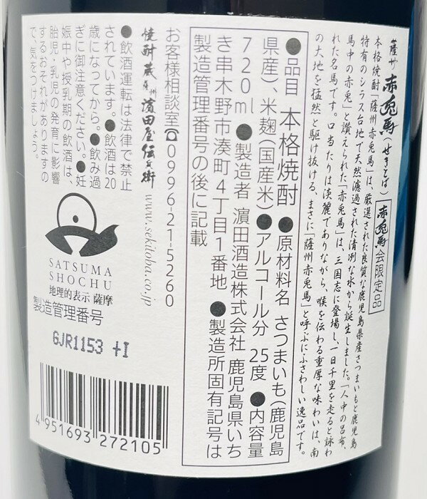 【送料無料】薩州 赤兎馬 25度 紫の赤兎馬 25度 薩州 赤兎馬 20度 720ml 飲み比べ 3本 セット さっしゅう せきとば むらさきのせきとば 芋焼酎 焼酎 本格芋焼酎 薩州濱田屋 濱田酒造 鹿児島県 プレゼント お中元 お歳暮