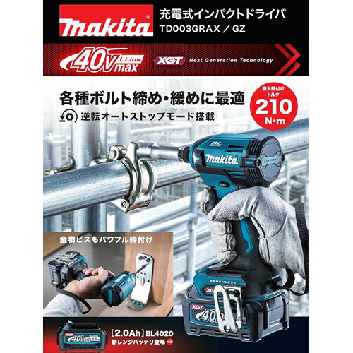 【makita】TD003GZ マキタ 40Vmax 充電式インパクトドライバ 本体のみ 【電池・充電器・ケース別売】