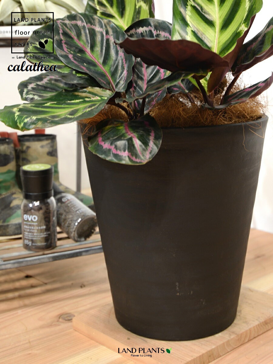 カラテア(ロセオピクタ:低木) 8号 黒色 セラアート鉢 1鉢 【ココファイバー・受皿】大型 ロセオピクター ロゼオピクター ゴシキヤバネバショウ Jungle velvet calathea roseopicta 3