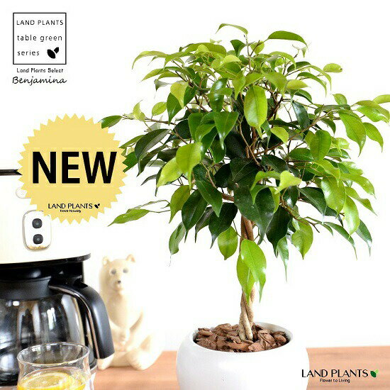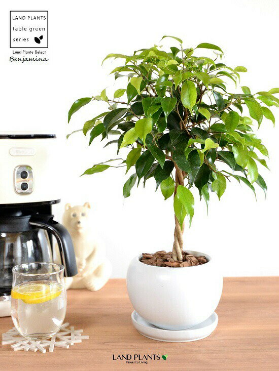 ベンジャミン(トピアリー仕立て) 白色 丸型 陶器鉢 【バークチップ・受皿・育て方】キングハロ キングハロー トピアリー スタンダード仕立て ボール ゴム ゴムの木 フィカス ベンジャミナ フィカスベンジャミナ 白 ホワイト 観葉植物