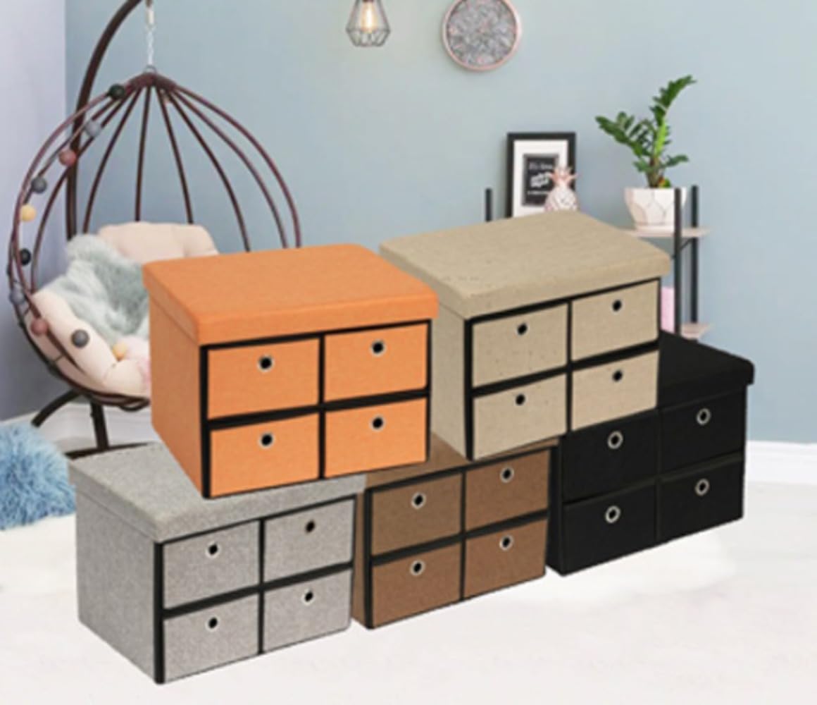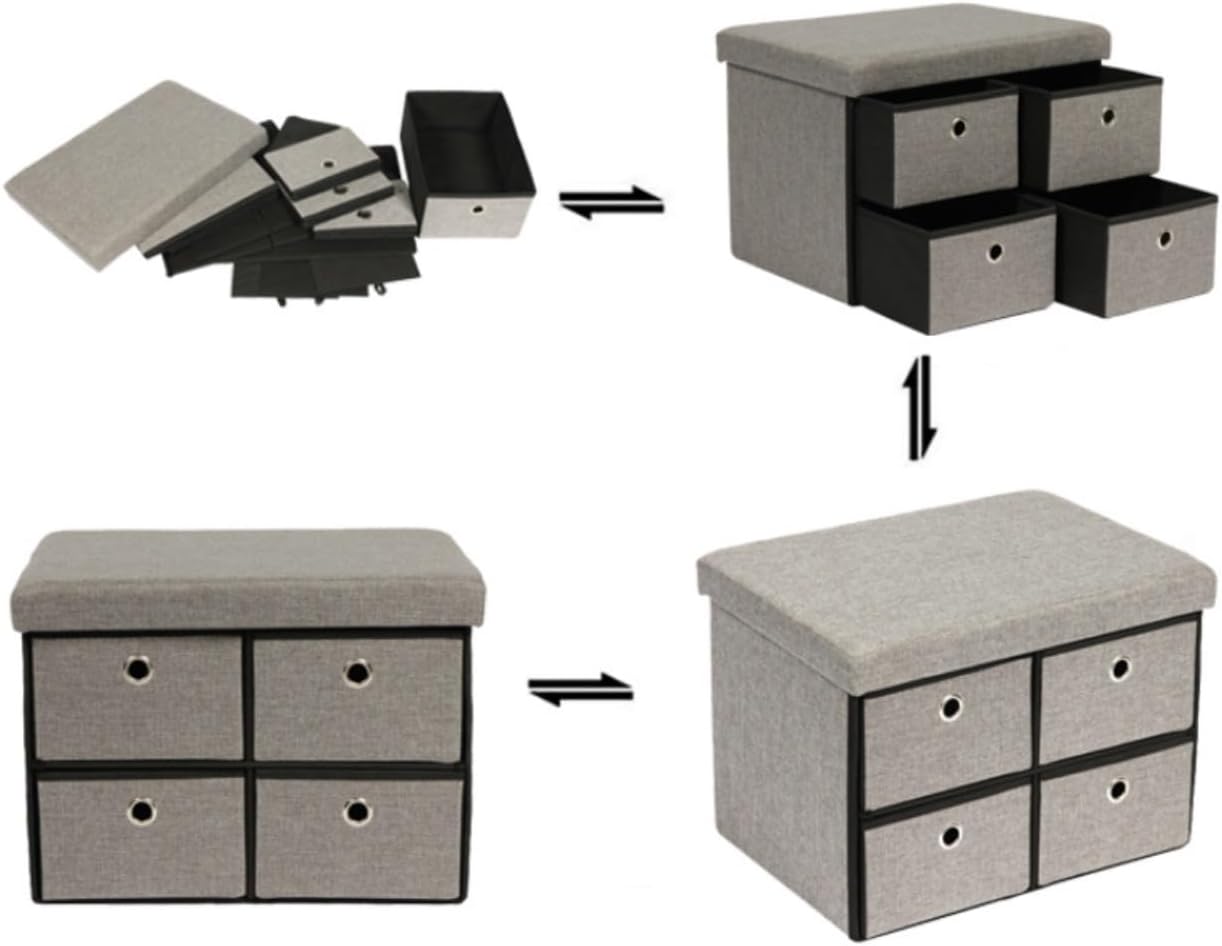 収納ベンチ 引き出し付き 折りたたみ スツール オットマン 玄関ベンチ ファブリック 収納ボックスストレージ 2段6引き出し ソファスツール 座面取り外し 足置き 収納(52.5*38*38cm) (