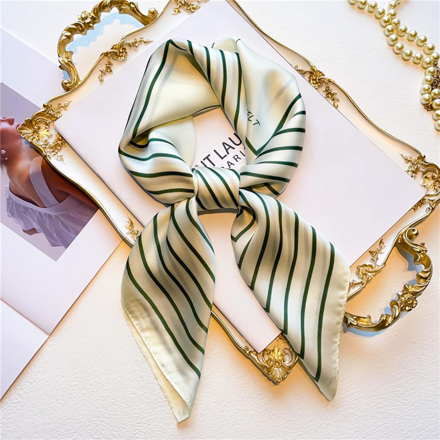 スカーフ シルク風 正方形 70cm 縞模様 シンプル 3色 手巻き仕上げ おしゃれ ヘアバンド 髪飾り ネッカチーフ バッグ用 小物 通勤 カジュアル UVカット ギフト レディーズ