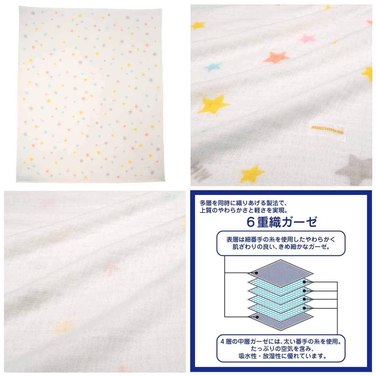 ポイント10倍!ミキハウス 6重織 ベビー ガーゼケット 星柄 ミキハウス正規販売店●メール便不可