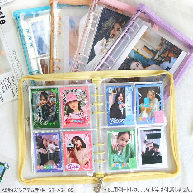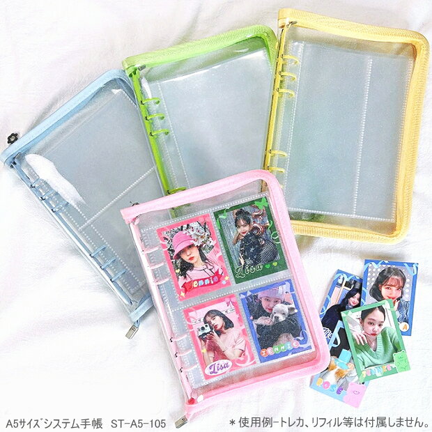 推し活手帳 A5 6穴 ラウンドファスナー クリア システム手帳 KA-SAM オタ活 収納 ファイル 推し色 おしゃれ トレカ 写真 グッズ ST-A5-105C