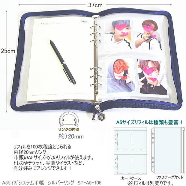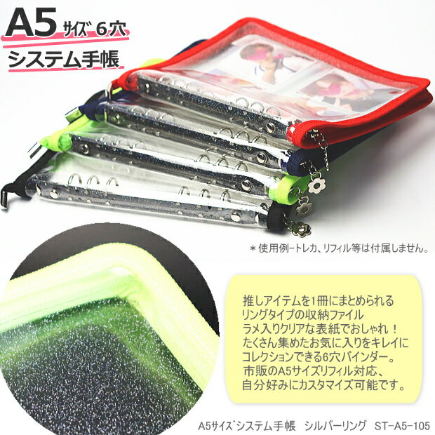 ラウンドファスナー式クリアタイプ 推し活手帳 A5サイズ 6穴 システム手帳 推し色 バインダー プリクラ 収納