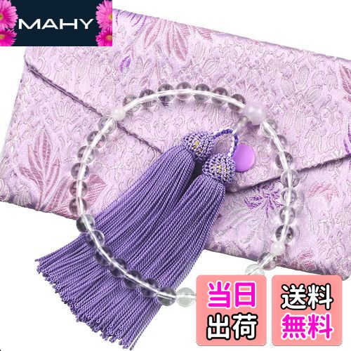 【送料無料】数珠 女性用 本水晶 藤雲石 正絹房 略式数珠 念数珠 念誦 じゅず 葬式 法事 法要 じゅず 約7ミリ