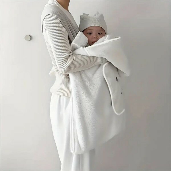 【無料送料】1パック ぬいぐるみベビーベア風動物/笑顔刺繍バックパック風トラベルブランケット ぬいぐるみパッチ付き - 厚手で暖かい、抱き心地の良いテディベア風ベビーキャリア風、手洗いのみ (ホワイト/カーキ) - ギフト用
