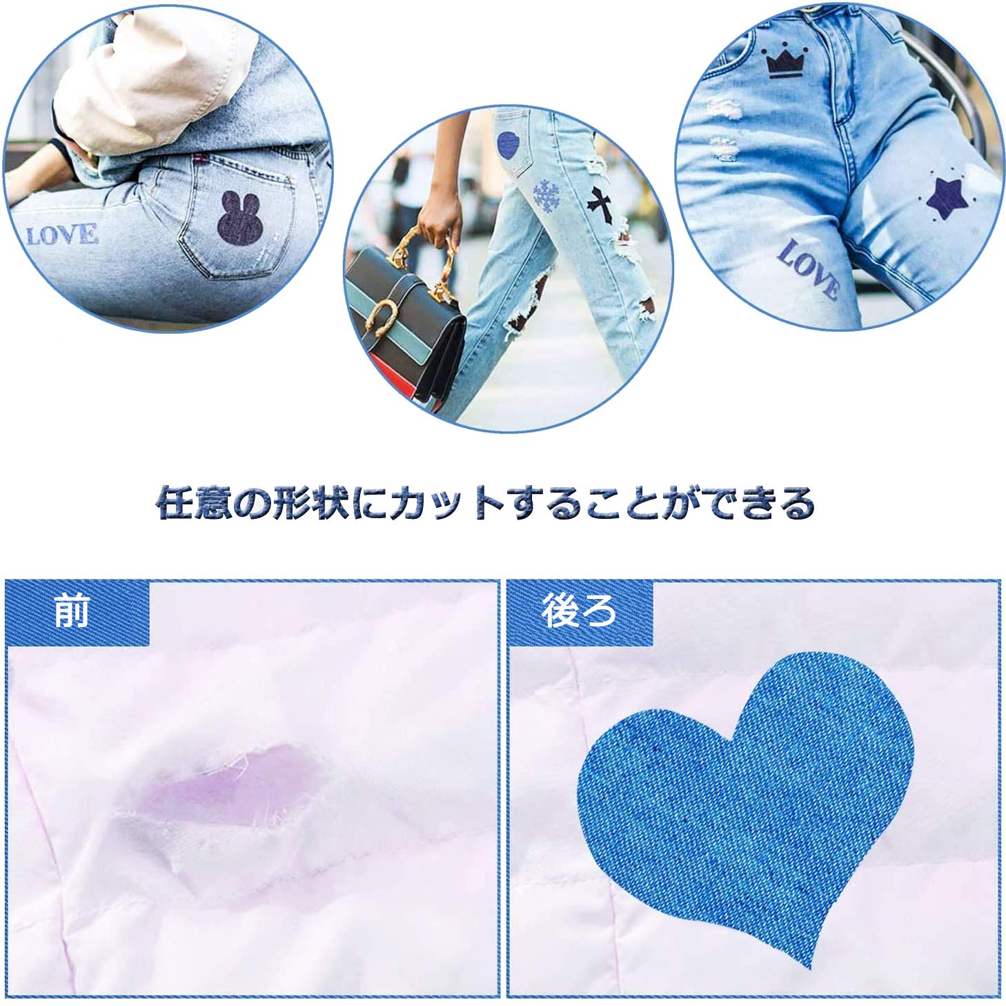 【送料無料】YFFSFDC デニム パッチ 5色4サイズ 20枚入り ジーンズ 補修布 貼付パッチ 接着デニム補修キット 衣類 パッチ 布 ワッペン アップリケ 自由に切り取れる 貼付け便利