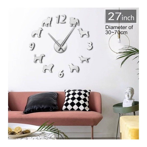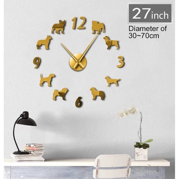 新品 人気犬模様 壁掛け時計 DIY ウォールクロック Dog 文字盤子犬ウォッチミラーフレーム インテリア