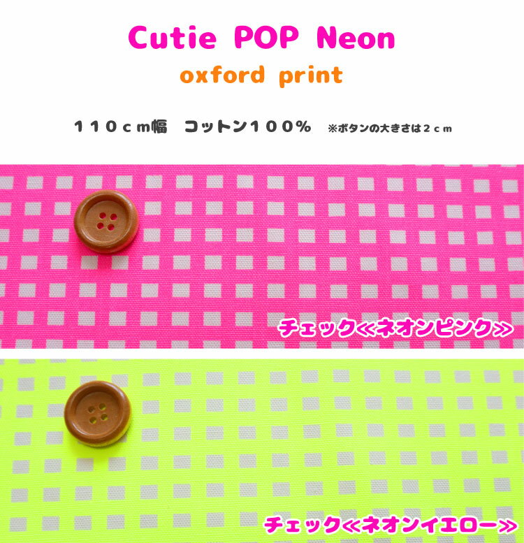 ▼Cutie POP Neon(キューティーポップネオン)≪オックスプリント≫※110cm幅 コットン100%|マツケ まつけ matsuke 蛍光カラー ネオンカラー チェック ストライプ ドット 生地 布 入園入学 |