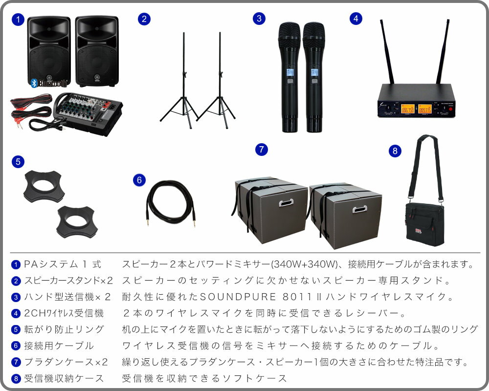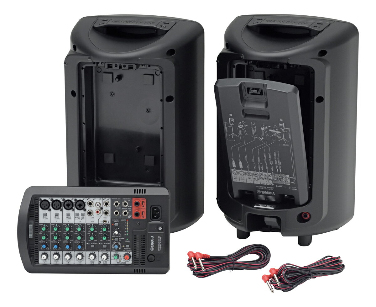 ヤマハ YAMAHA STAGEPAS600BT 簡易PAセット(プラダンケース+各種ケース/高機能ワイヤレスマイク2本とスタンドセット)