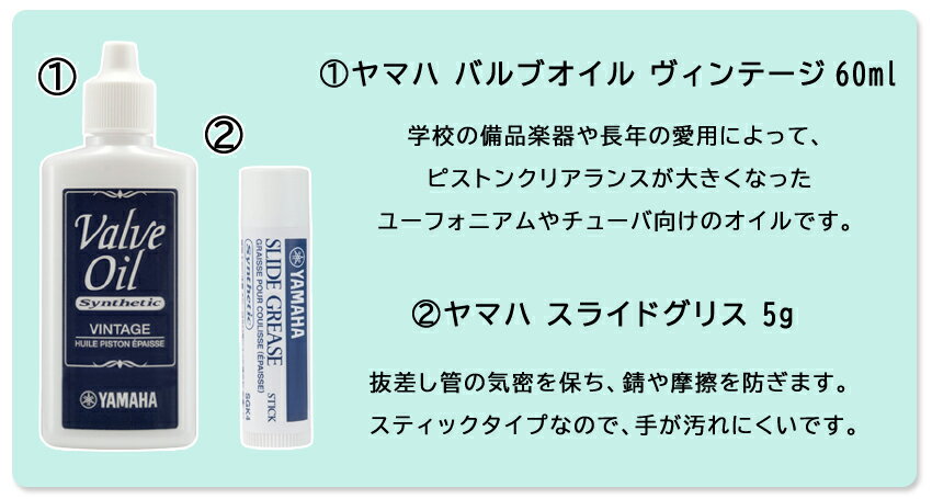 ユーフォニアム&チューバ(ピストン用) 管楽器お手入れセット【備品楽器や長年使用している楽器向けのオイル付き】KOSEP5と同じグリス 吹奏楽 部活 初心者