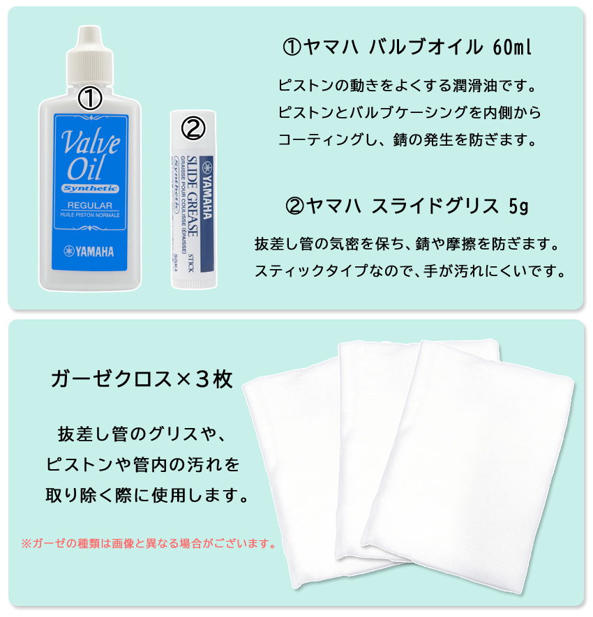 ラッカー仕上げのユーフォニアム チューバ(ピストン)用 お手入れセット KOSEP6やKOSBBP6と同じオイル付き【ラッカーポリッシュ&クロス2枚付き】吹奏楽部 初心者