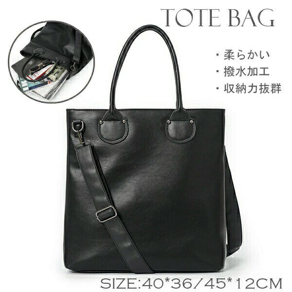 トートバッグ メンズ a4 縦型 軽量 ビジネスバッグ 2way メンズトートバッグ ファスナー付き 大きめ 撥水 通勤 カジュアル メンズ鞄 黒