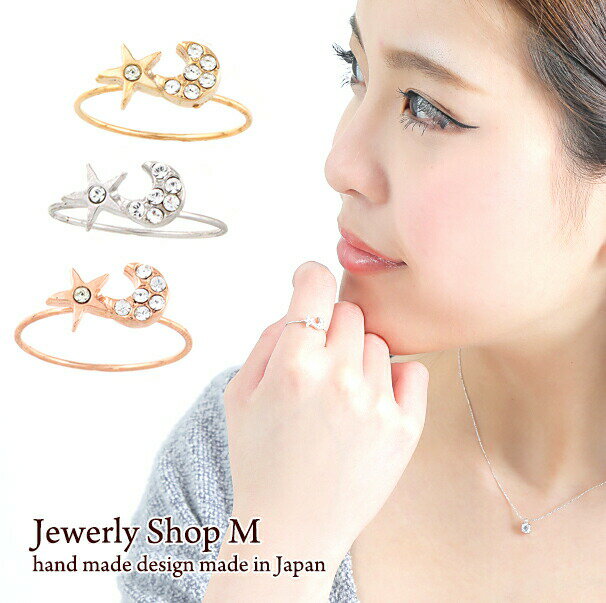 スター&パヴェ三日月リングニッケルフリー 国産 日本製r159