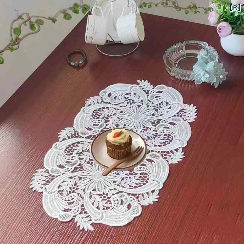 テーブルセンタークロス レース ヨーロピアン ダイニング リビング チェスト キャビネット インテリア 装飾 多用途 防塵 刺繍 シンプル エレガント おしゃれ 白 花柄 楕円形