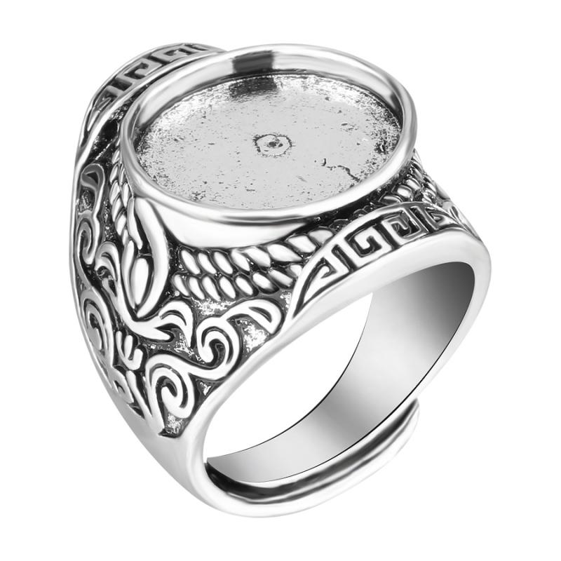 指輪 男女兼用 サイズ調整可能 レトロ ヴィンテージ 王冠モチーフ 指輪台 透かし彫り DIY 琥珀 蜜蝋 はめ込み シルバーメッキ アクセサリー タイシルバー風