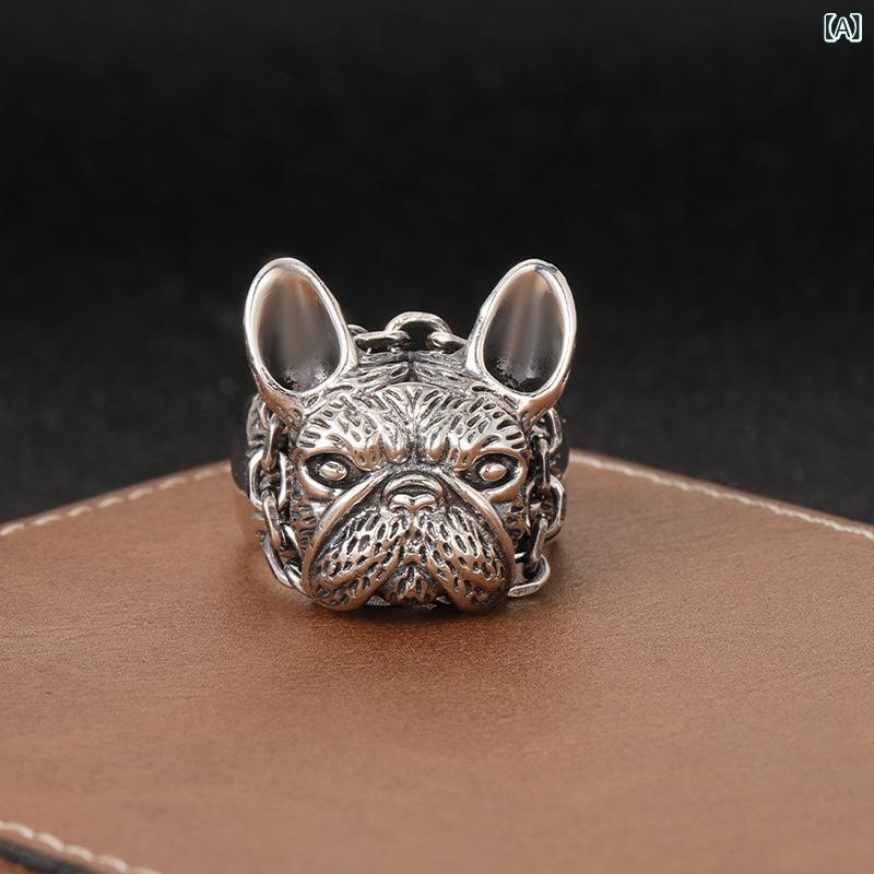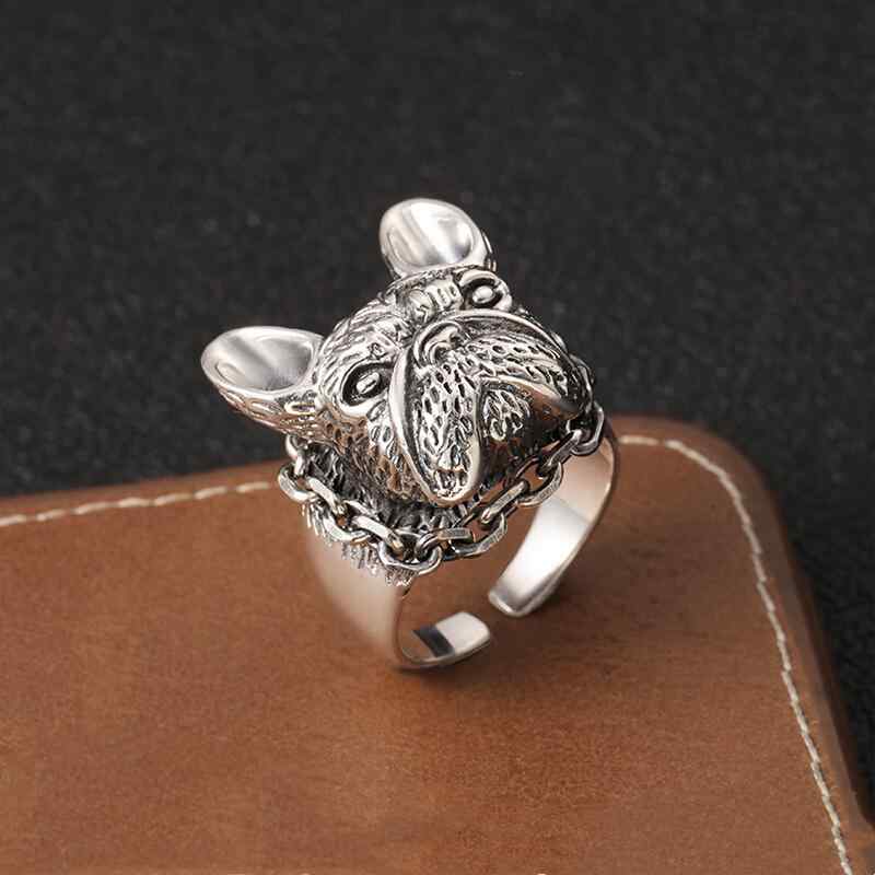 指輪 メンズ S925シルバー ブルドッグヘッド ヴィンテージ加工 重厚感 オープンリング フリーサイズ 電気メッキ クール カジュアル