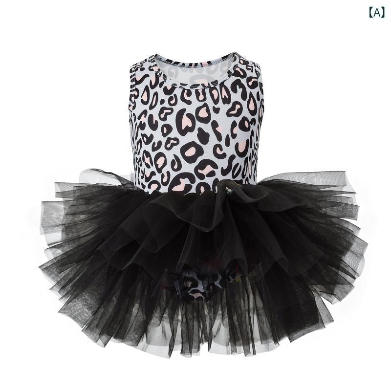 キッズ 女の子 ダンスウェア バレエ レオタード ノースリーブ チュールスカート チュチュ 発表会 レッスン着 ラテンダンス 衣装 綿混 ポリエステル 動きやすい 伸縮性 ヒョウ柄
