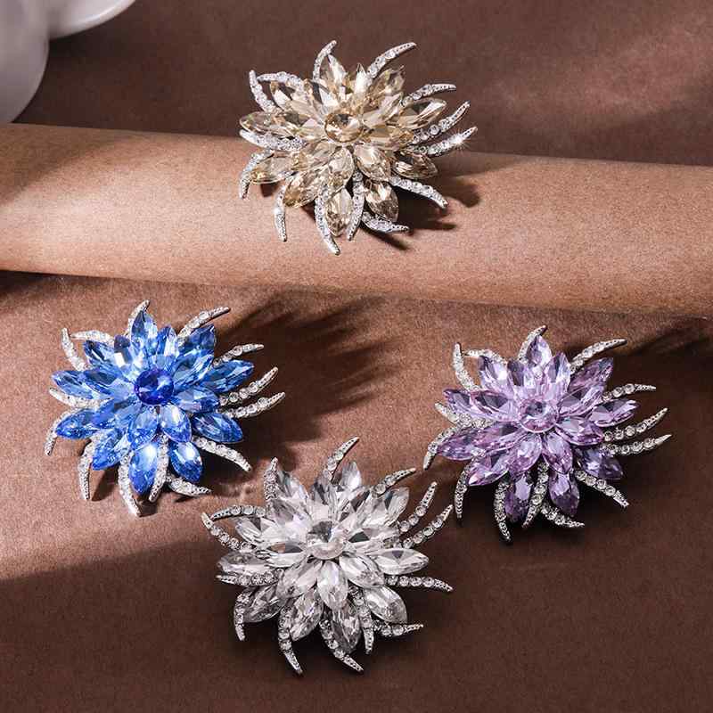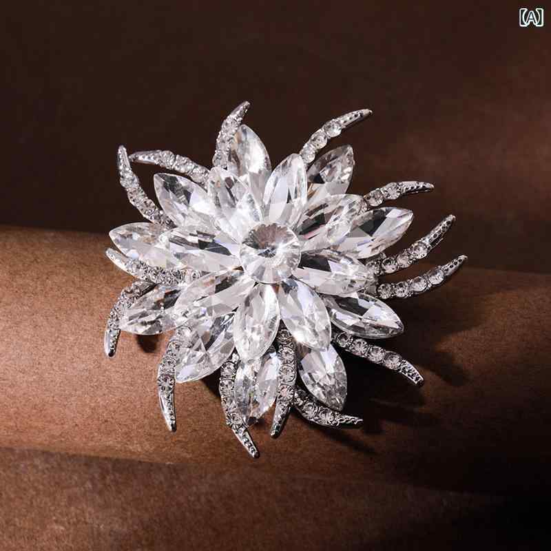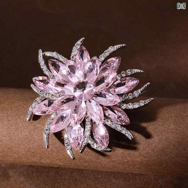 ブローチ レディース 女性用 露見防止 ピン ずれ防止 欧米風 おしゃれ 高級感 水晶 ジルコニア フラワー 合金製 2WAY仕様 服装小物 アクセサリー