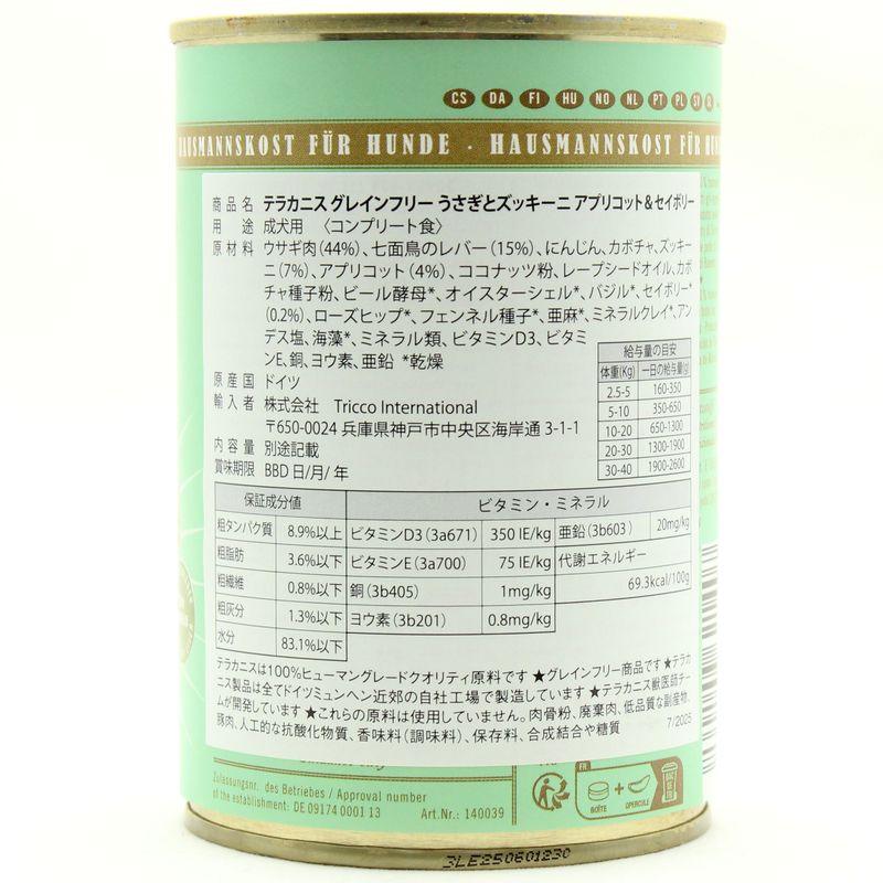 最短賞味2028.4・テラカニス 犬 グレインフリー ウサギ肉400g缶コンプリート食ドッグフード穀物不使用TerraCanis正規品tc21407