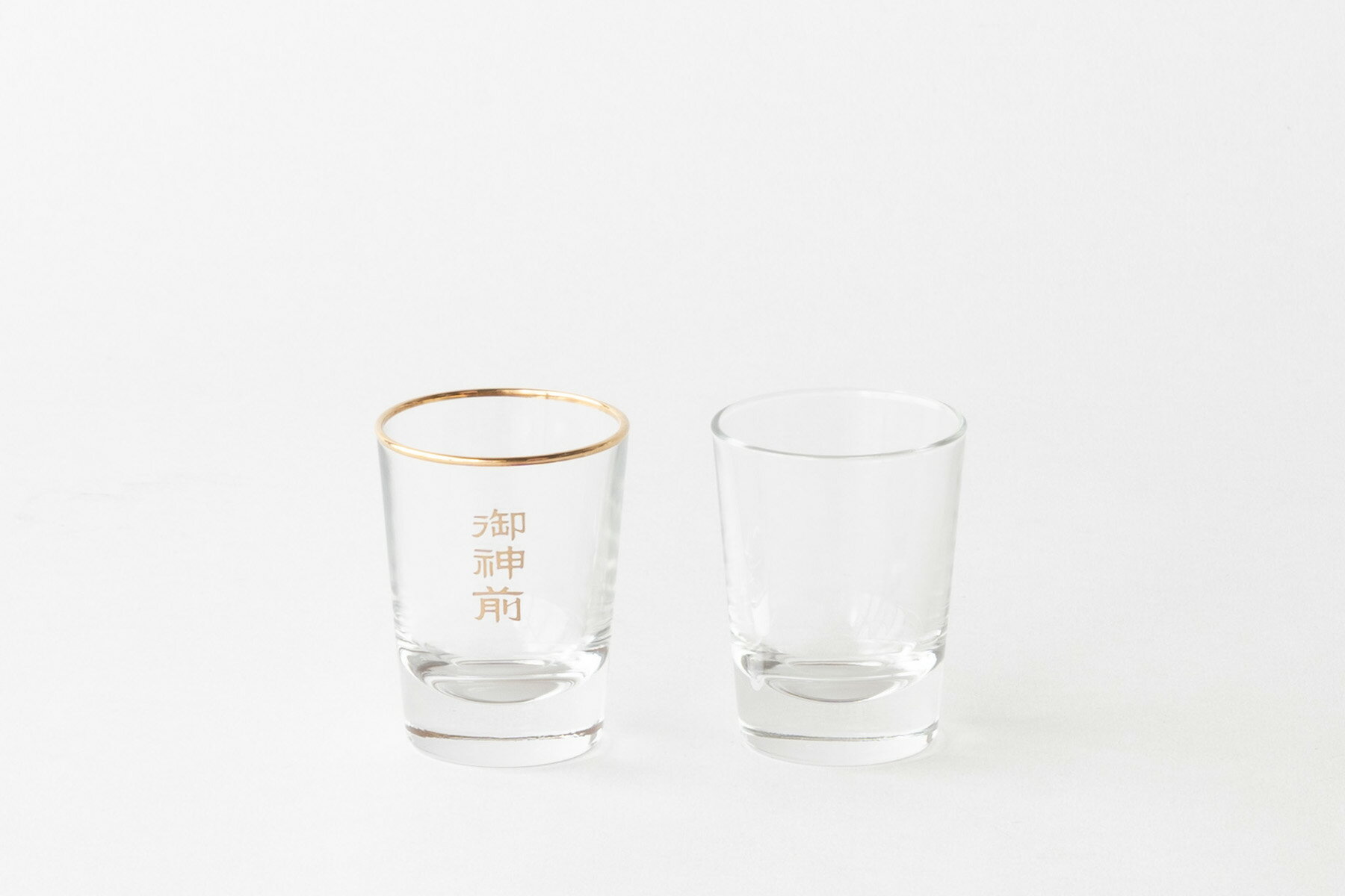 水入れ ガラス製 御神前 小型 選べる2デザイン 金付 6.3センチ おしゃれ 水器 酒器 ガラスコップ 神饌 お供え 国産 神棚 神具
