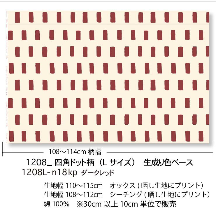 ダークレッド 四角ドット 昼 1208-n18 フリーハンド 長方形 ドット 生地 北欧風 女の子 ダークレッド 濃い赤 エンジ色 オックス シーチング ブロード x販売停止中_(ev) 生地 布 松尾捺染 綿100% 10cm単位 カット売り 入園入学 商用利用可