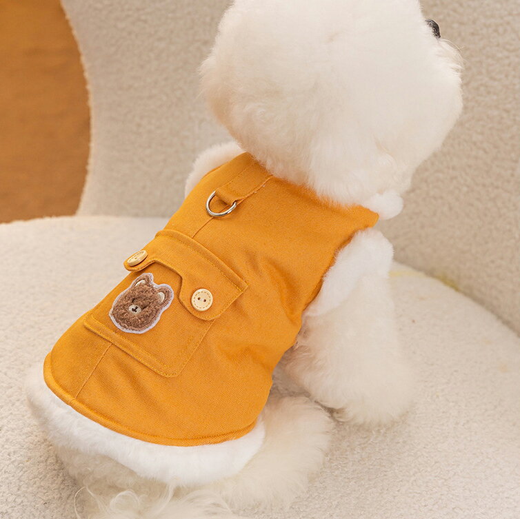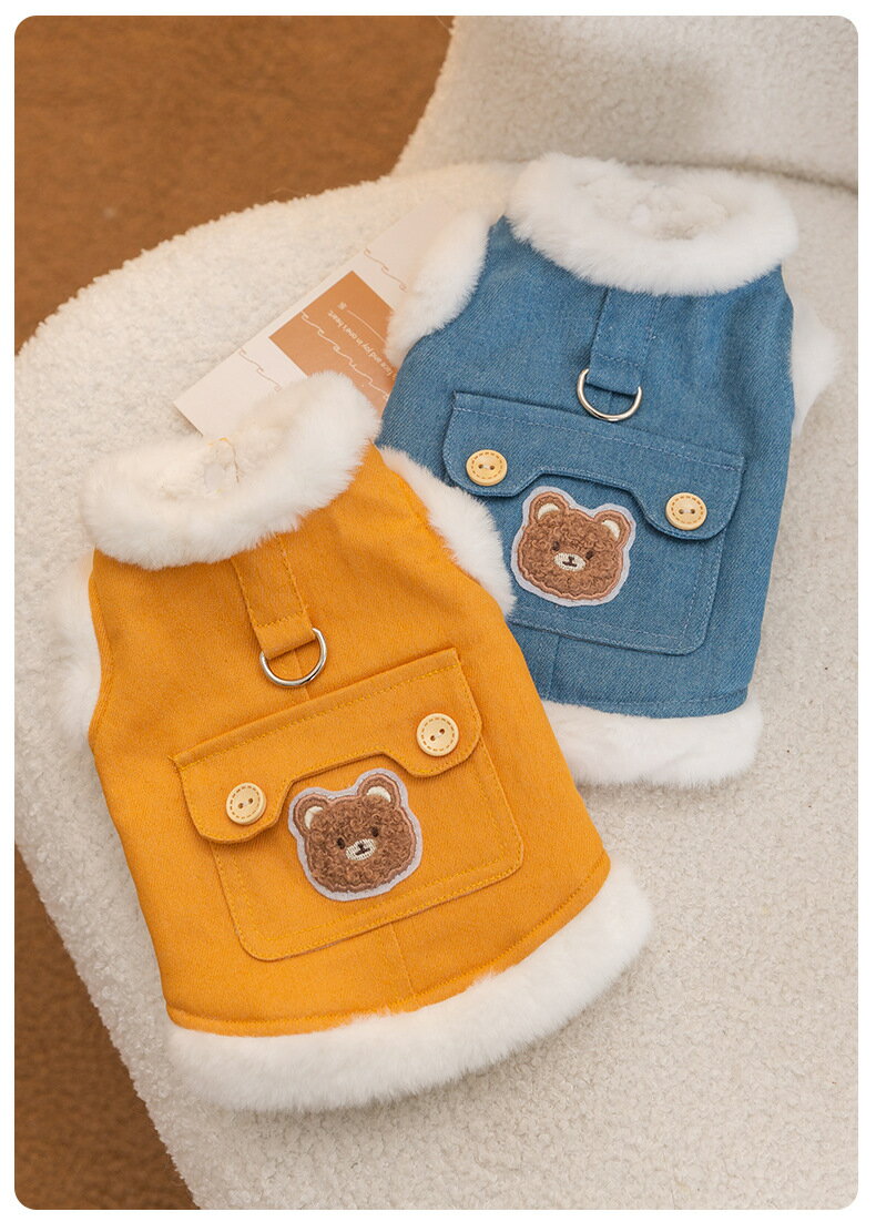 かわいい ペット服 デニム コート ジャケット 裏起毛 熊柄 犬服 ドッグウェア 冬 小中型犬 子犬 猫 洋服 あたたかい 防寒 チワワ服 お散歩 ペット用品