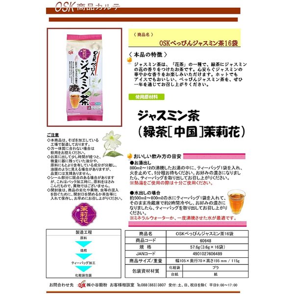 【2袋まで送料一律!!】OSKべっぴんジャスミン茶ティーパック(3.6g*16袋)
