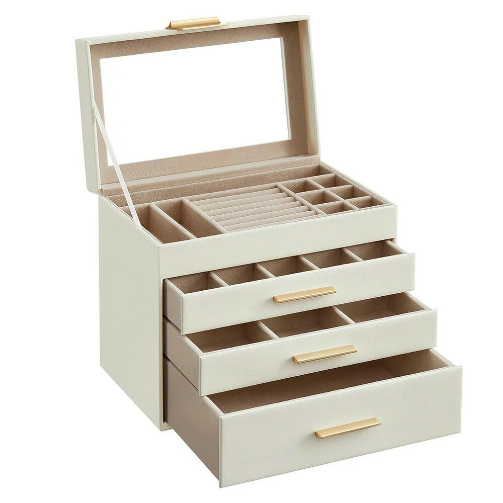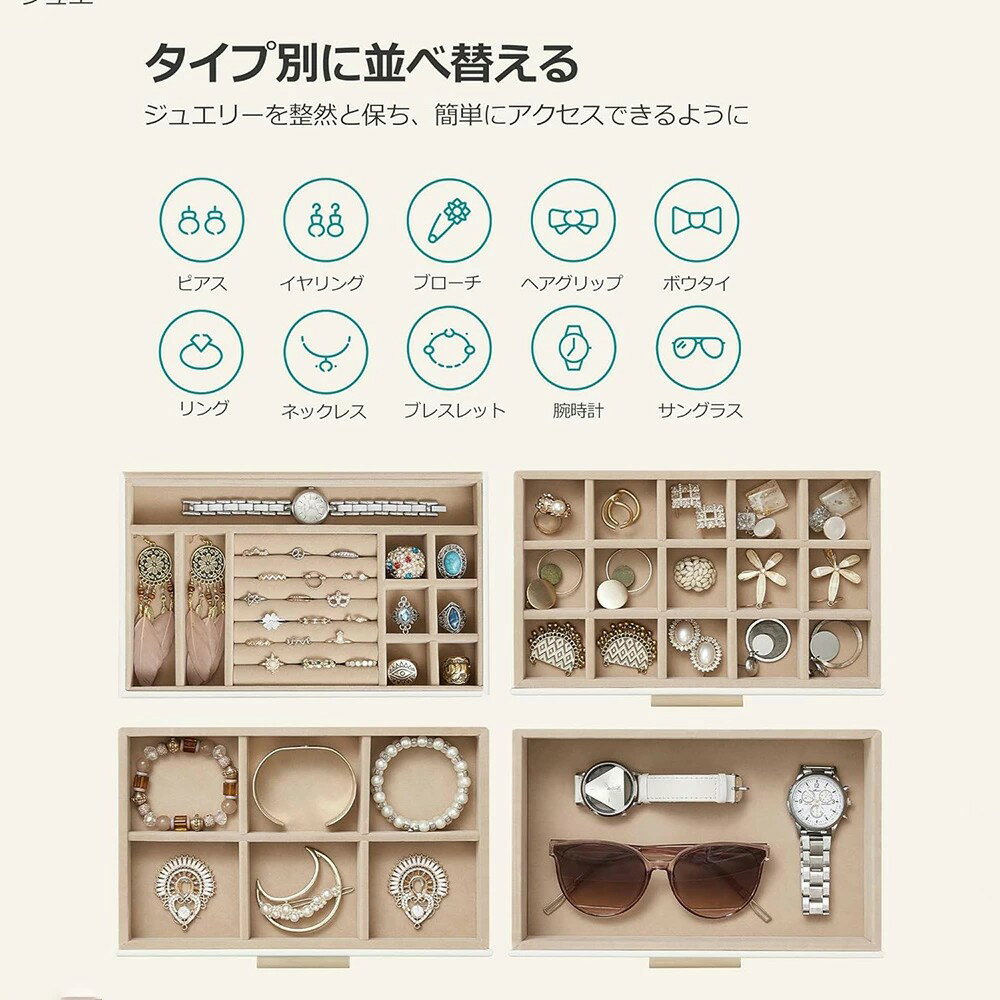 ジュエリーボックス 大容量 アクセサリーケース 4段式 引き出し 指輪、ブレスレット収納宝石箱 ガラス蓋 母の日ギフト ホワイト アクセサリーケース ジュエリーケース アクセサリー 収納 大容量 アクセサリートレイ ネックスレス ピアス 指輪 小さい プレゼント ギフト