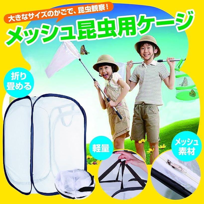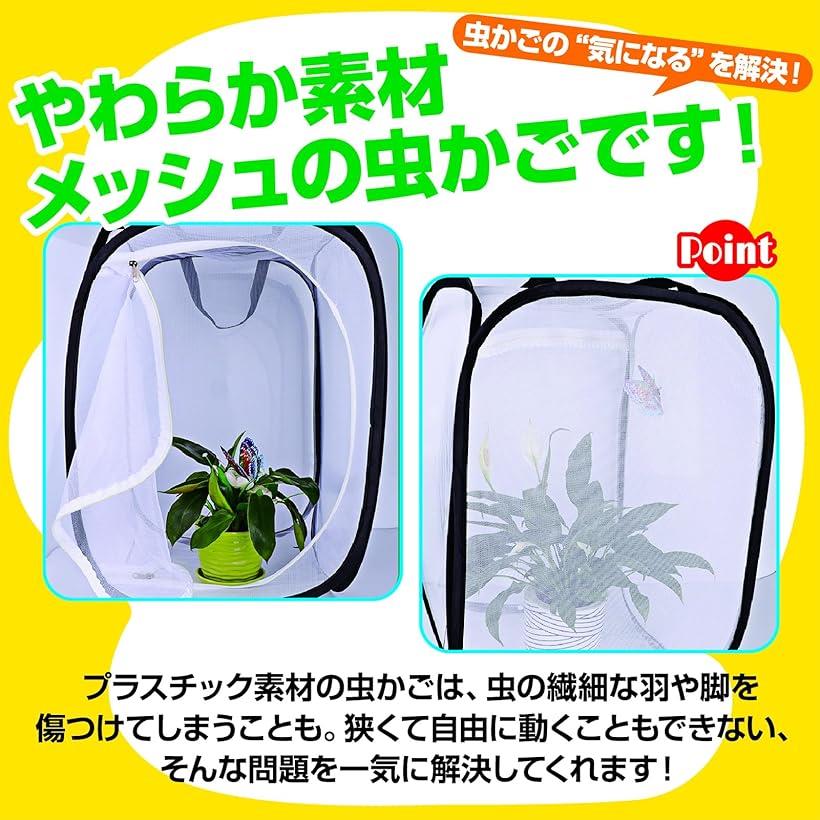 昆虫ケージ 折り畳み 虫かご 昆虫観察 繁殖 飼育ケース 軽量 メッシュ 通気性 L (ホワイト, L)