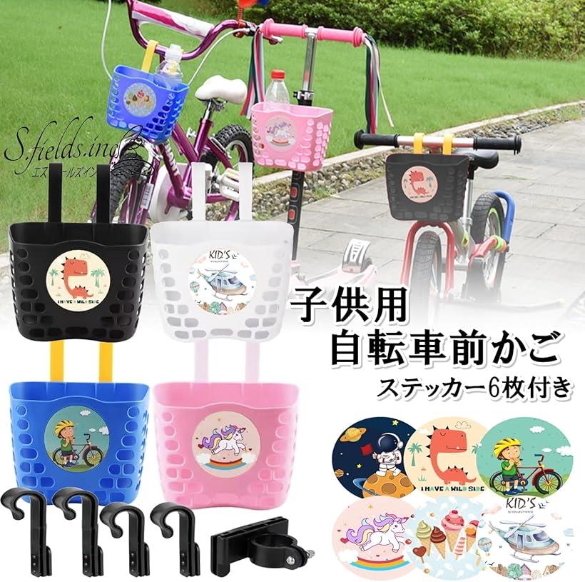 前かご 子供用自転車 後付け フロントバスケット 金具3種類付き ストライダー プラスチック (ブラック, FREE)