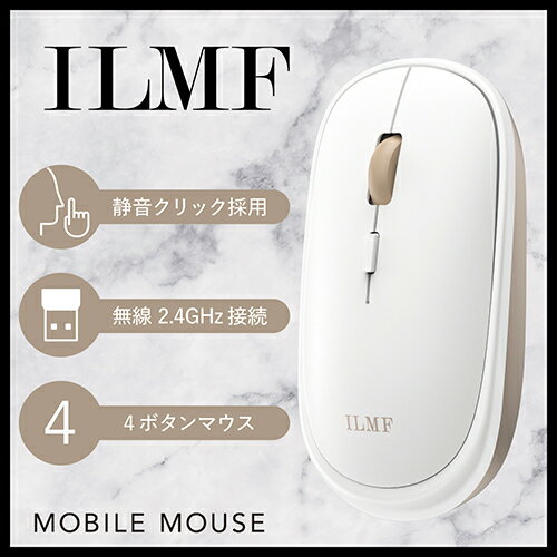 エレコム(ELECOM) M-TM10DBWH-IL ホワイト ILMF 2.4GHz無線 薄型マウス 4ボタン ワイヤレス 厚み28mm