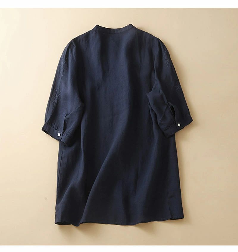 半袖シャツ レディース 綿麻風 刺繍 シャツ 半袖 立ち襟 トップス ボタン 体型カバー ゆったり シャツブラウス 通気性 吸汗 快適 シンプル カジュアル キレイめ 着回し 春 夏 洗濯機可 軽量 普段着 外出着 デート オフィス リゾート 多用途 トレンド 無地