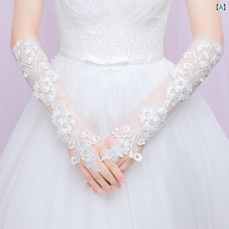 グローブ ロング 手袋 ウエディング 結婚式 ブライダル 花嫁 アクセサリー 薄手 涼しい 指し レース ホワイト