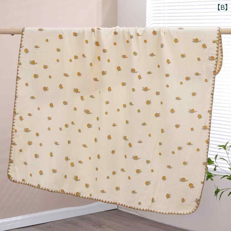 ベビー 男の子 女の子 夏用 ガーゼ 掛け布団 赤ちゃん 毛布 カートゥーン柄 新生児 幼児 軽量 吸湿速乾 四季通用 110cm 正方形 オレンジ クマ ハート