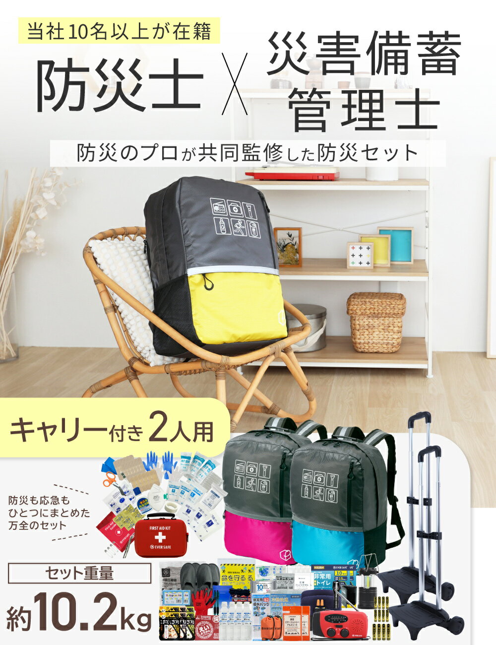 防災セット 2人用 40L ビッグリュック キャリーカート付き 防災グッズ 防災士監修 ファーストエイドキット 避難グッズ 地震対策 トイレ 非常食 ランタン ラジオ 長期保存水 充電器 防災 警戒レベル5 EVERSAFE L5BRCR02