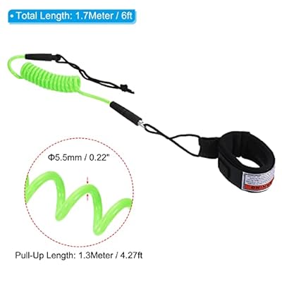 PATIKIL 1.7 M x 5.5 mm サーフボードリーシュ コイル状リーシュ プラグ付き 手首紐ロープ ボディーボード パドルボード用 グリーン