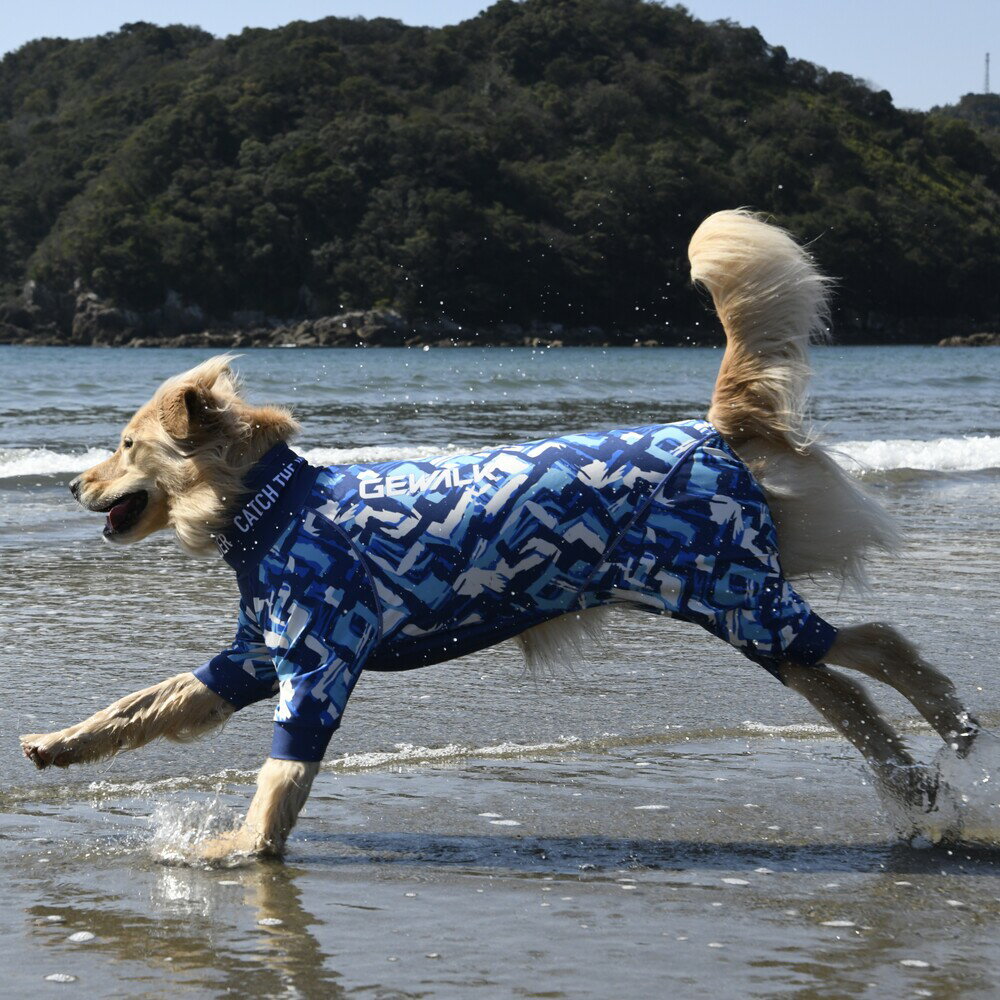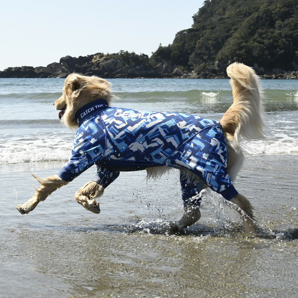 【GEWALK ジウォーク】大型犬 LGE531 マーブルプリント プロテクト ストレッチ ロンパース【2XL 3XL 4XL 5XL】ラッシュガード犬服 ペット服 夏服 ドッグウェア アウトドア 水遊び マリンスポーツ ウォータースポーツ サップ ドックサップ