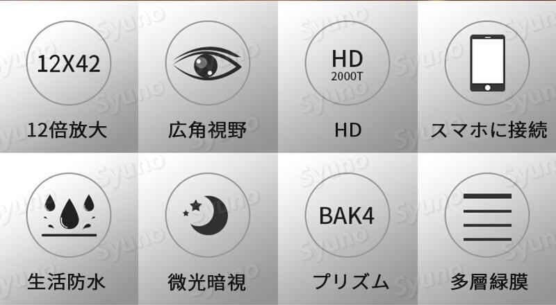お買い物マラソン【P5倍】高精細屋外用双眼鏡 新技術 美景観賞 シンプルスタイル 12倍放大 広角視野 スマホに接続 生活防水 微光暗視 高透過率 鮮明な画面 FMC多層コーティング