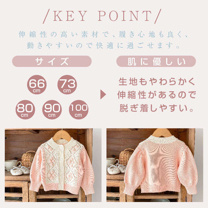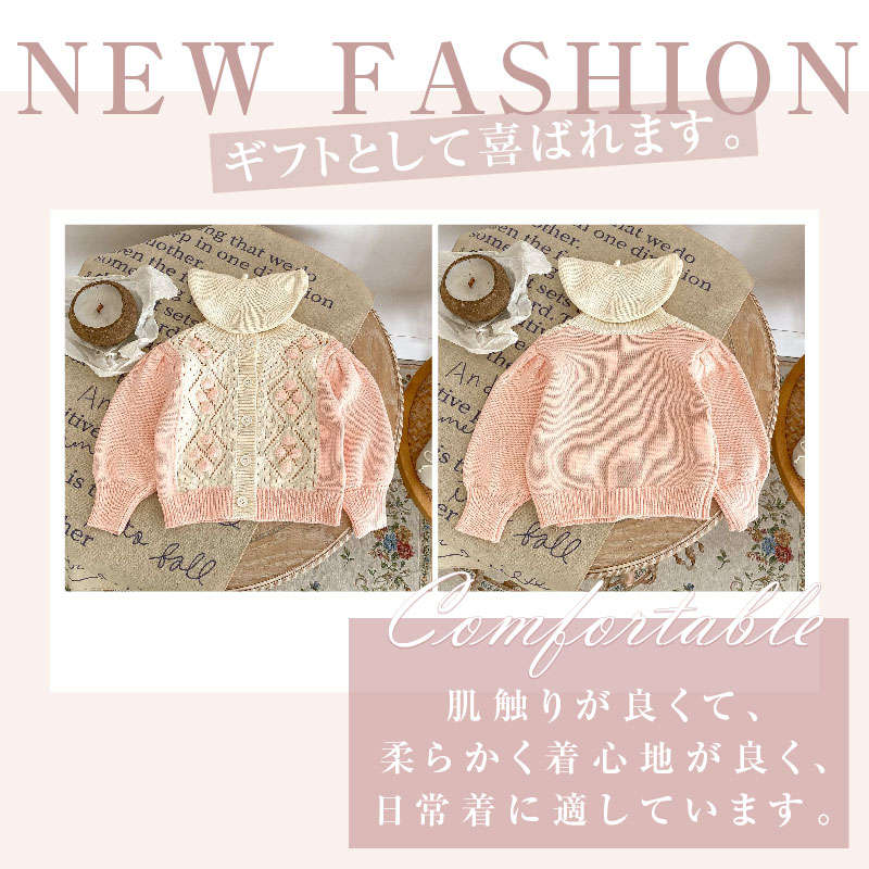 ベビー服 女の子 クルーネック 長袖 ニット カーディガン かわいい / 子供服 トップス 日常 カジュアル 春 秋 保育園 赤ちゃん 幼児 新生児 出産祝い プレゼント 贈り物 66 73 80 90 100 cm