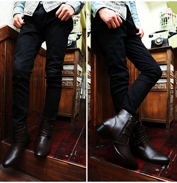 レザーブーツ メンズ ショートブーツ PU皮 革靴 サイドジッパー ブーツ モンクストラップ ハイカットシューズ レザーシューズ アウトド