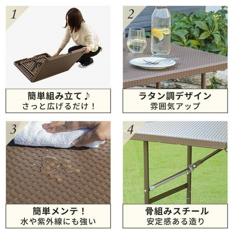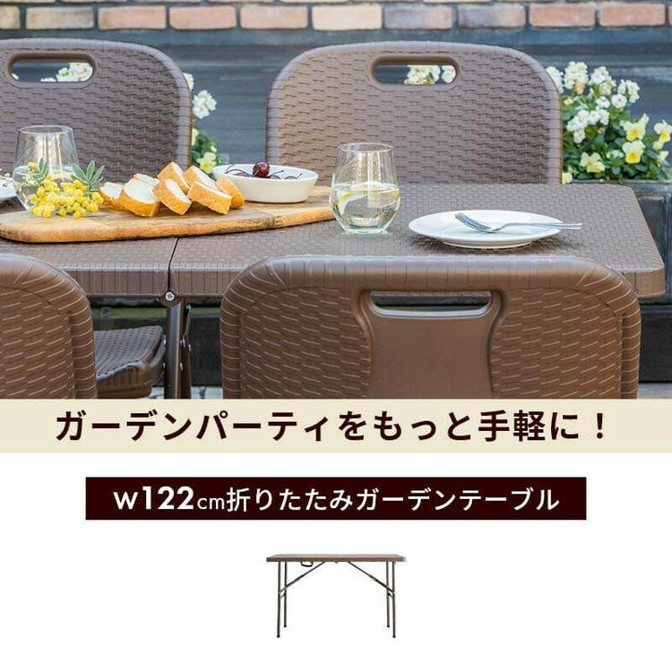 ラタン調 折りたたみ ガーデンテーブル マカティ 幅122cm 折りたたみテーブル 屋外 アウトドア テーブル ベランダ テラス 折り畳み コンパクト ガーデンファニチャー(代引不可)【送料無料】