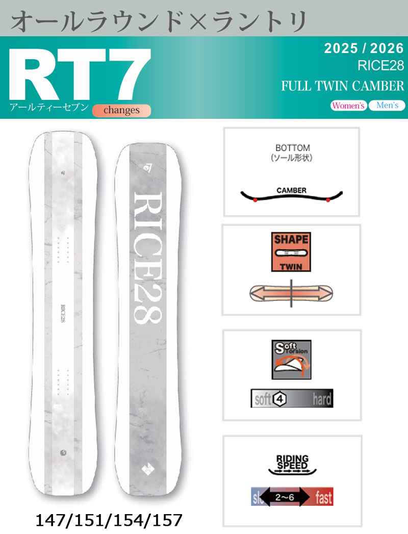 25-26 RICE28/ライス RT7 アールティーセブン メンズ レディース スノーボード いぐっちゃん グラトリ ラントリ 板 2026 予約商品