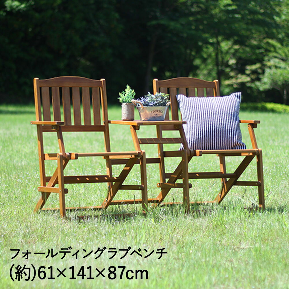 フォールディング ラブベンチ 天然木 折りたたみ 不二貿易 | ベンチ 2人 2人掛け 2脚 テーブル ローテーブル 木製 ベランダ バルコニー テラス 屋外 家具 椅子 いす ガーデンテーブル ウッド ウッドチェア ウッドデッキ 折りたたみ椅子 イス アウトドア ガーデン 屋外家具