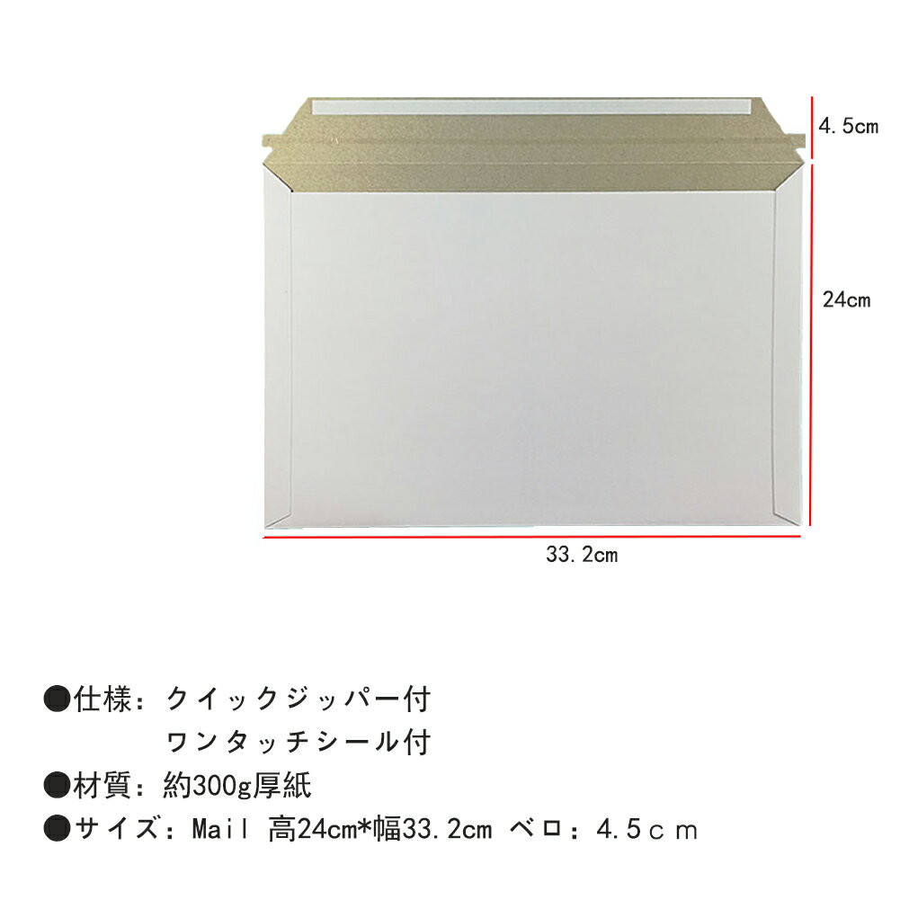 厚紙封筒 メール便対応サイズ ビジネスレターケース封筒 高24CM 幅33.2CM 1000枚セット ワンタッチ貼付テープ、開封テープ付き白 ネコポス クリックポストゆうパケット ヤマト運輸 ゆうパック日本郵便 メール便用 クイックジッパー、シール マチ付、透けない