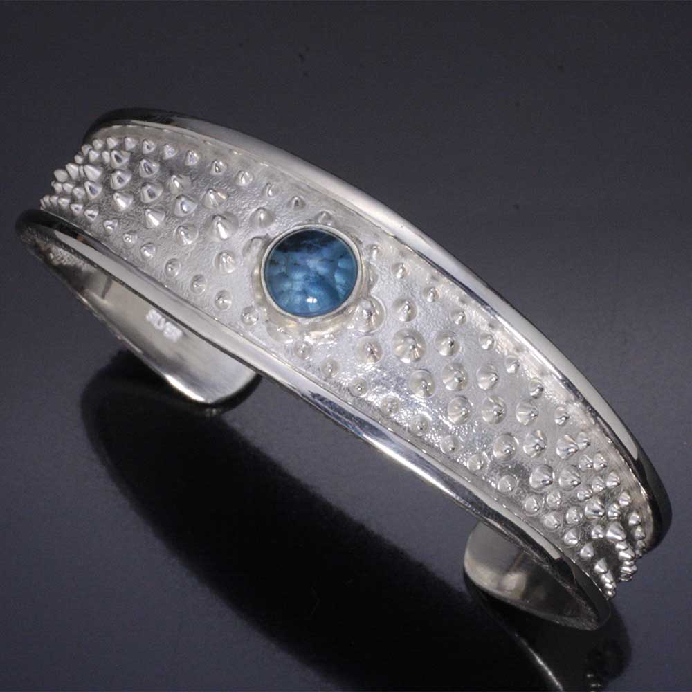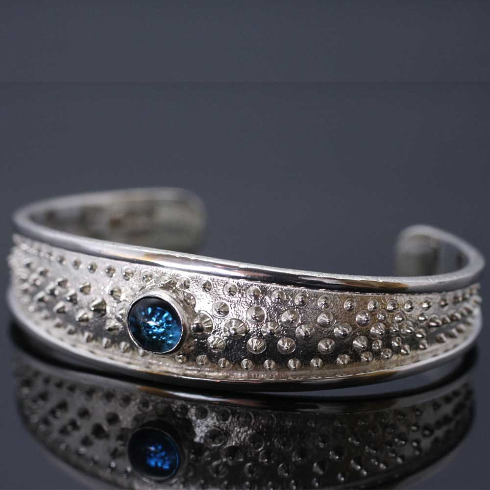 バングル メンズ シルバー 龍頭 霰 バングル 白仕上げ ブルートパーズ 伝統技法 和柄 和風 ブランド 男性用 ギフト プレゼント