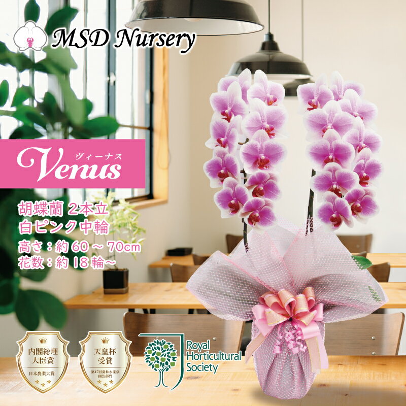 純国産 胡蝶蘭 【ご自身で咲かせよう!】中輪 2本立ち 白ピンクグラデーション 花持ち長い ヴィーナス チャレンジ胡蝶蘭 祝い花 生花 鉢 洋蘭 洋ラン 白ピンク 産地温室直送 お祝い プレゼント 花 ギフト 贈り物 お誕生日 ご自宅用 日本育ち ラン