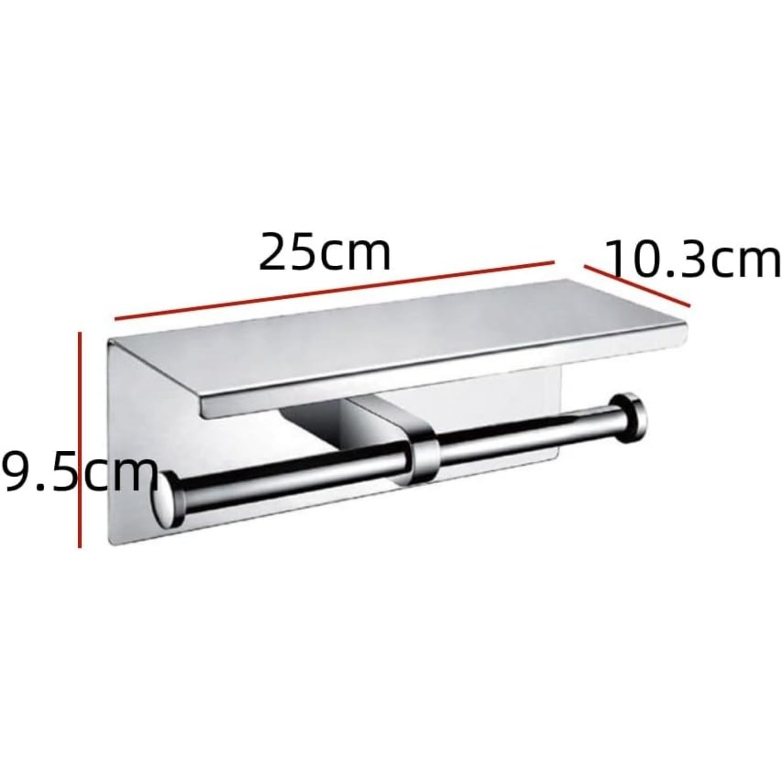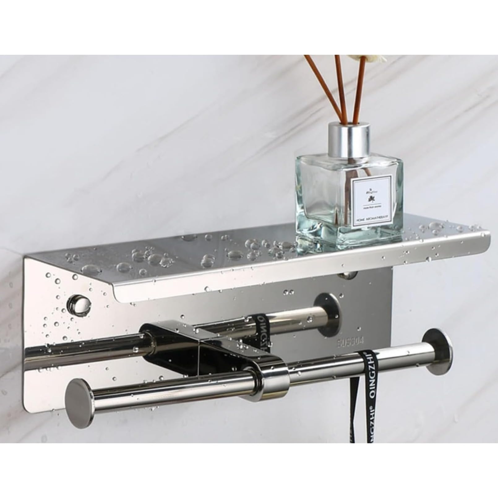 トイレットペーパーホルダー ステンレス製 用 スマホ置き場付き ダブルロール対応 バータイプ 304ステンレス鋼 防水 錆びない タオルホルダー兼用 洗面所 トイレ リビング 収納 おしゃれ モダン シンプル 取り付け簡単 多機能 家庭用 業務用 (A)