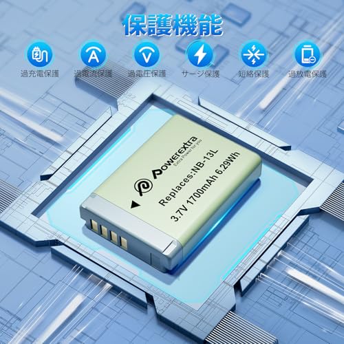 Powerextra NB-13L 互換バッテリー1700mAh 大容量 Canon/キャノン Canon PowerShot G5X G7X G7X Mark II G9X G9X Mark II SX620 HS SX720 HS SX730 HS SX740 HS 対応純正互換バッテリー 1PCS
